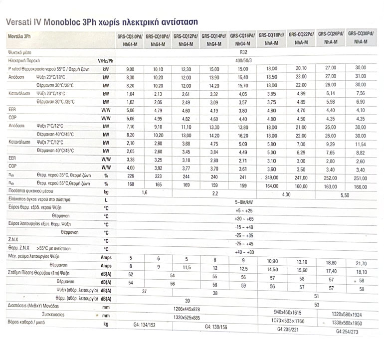 GREE Versati IV GRS-CQ26Pd/NhA-M Αντλία Θερμότητας Monobloc R32 26KW Τριφασική