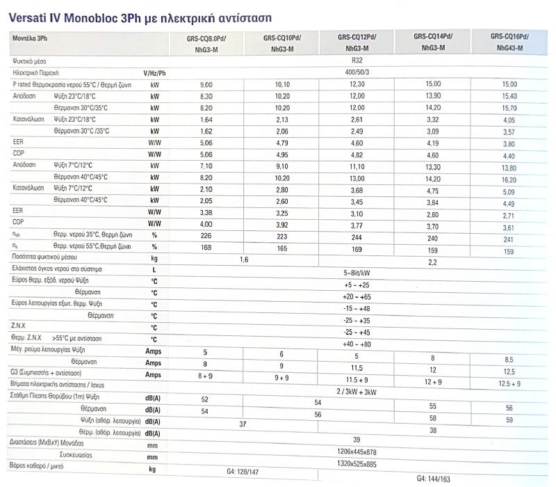 GREE Versati IV GRS-CQ8.0Pd/NhG3-M Αντλία Θερμότητας Monobloc R32 8KW Τριφασική
