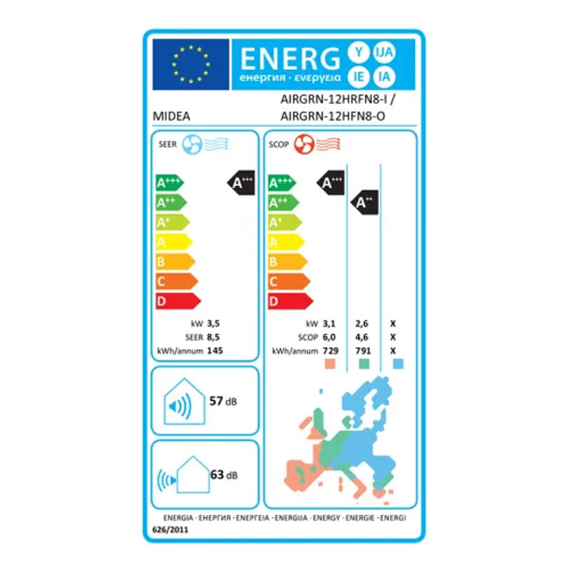 MIDEA Air Green AIRGRN-12HRFN8-I Κλιματιστικό Inverter 12000 BTU A+++/A+++ με Τεχνητή Νοημοσύνη