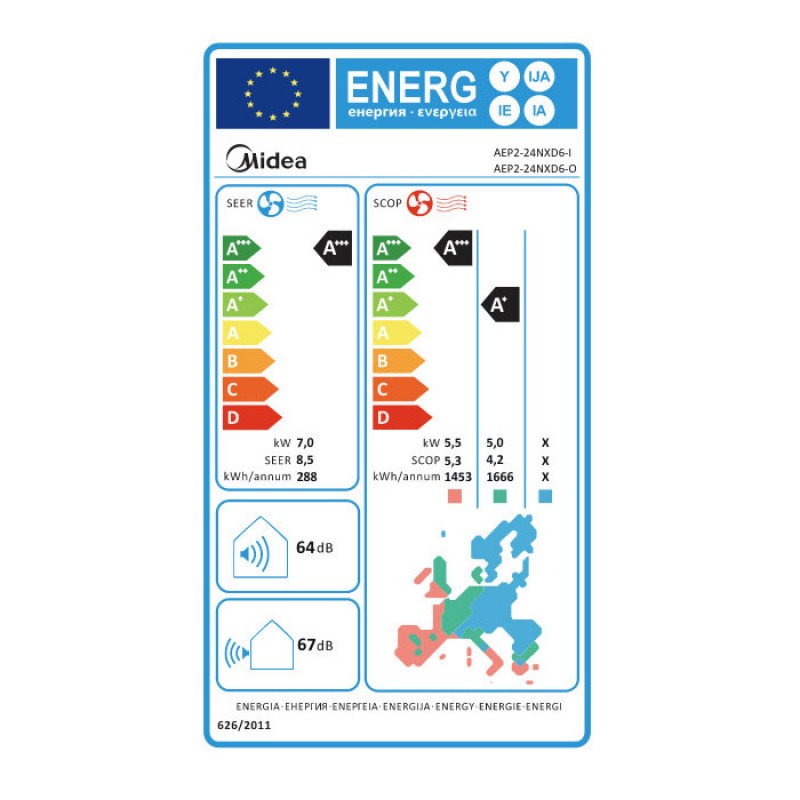 Η ενεργειακή κλάση των κλιματιστικών Midea σε όλες τις ζώνες, απόρροια των πολύ υψηλών εποχιακών συντελεστών απόδοσης (SEER & SCOP), μειώνει αισθητά την κατανάλωση ρεύματος, συμβάλλοντας περεταίρω στη μείωση των εκπομπών ρύπων στην ατμόσφαιρα και εξασφαλίζοντας ταυτόχρονα τη μέγιστη απόδοση του κλιματιστικού.