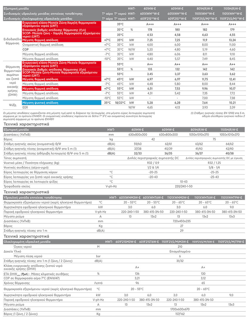 - Back up ηλεκτρικές αντιστάσεις 3kW (1ph) ή 6kW (3ph) ή 9kW (3ph)