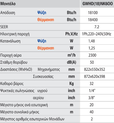 GREE GWHD(18)NK6OO Εξωτερική Μονάδα για Multi Κλιματιστικά 18000 BTU