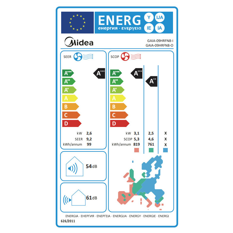 • Ενεργειακή Κλάση Θέρμανσης (Μέσης Ζώνης) A++