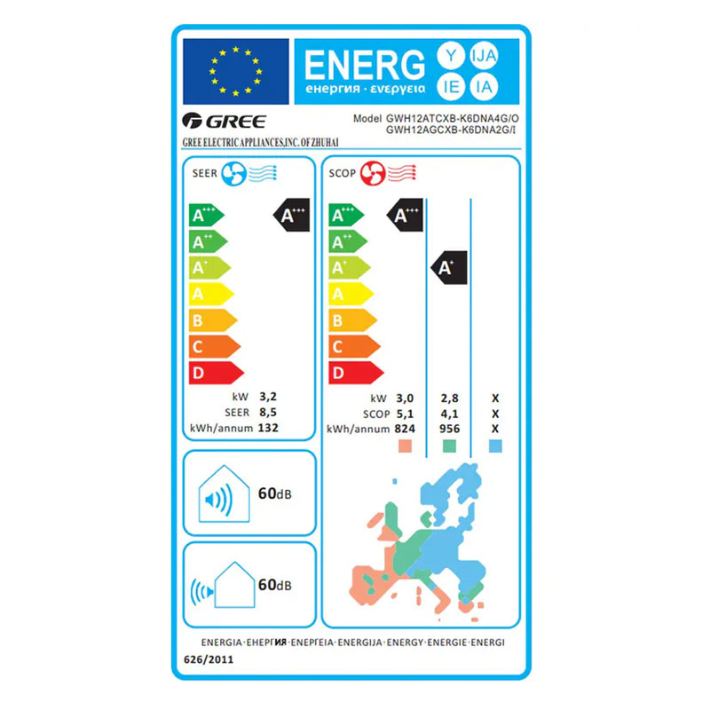 - Βαθμός θερμικής απόδοσης (SCOP): 4.1/5.1 W/W