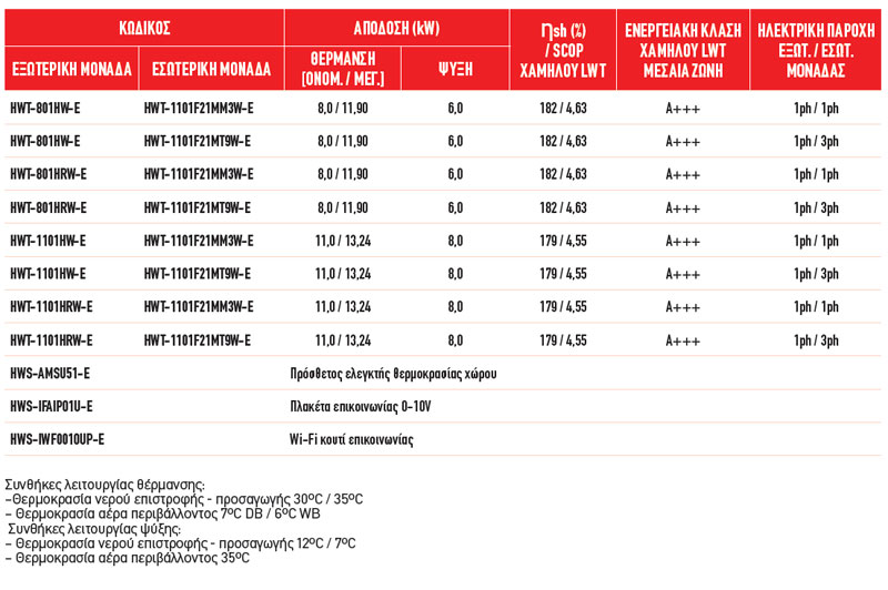 - Μέγιστη θερμοκρασία νερού εξόδου έως 65°C (για μοντέλα 8 & 11kW)